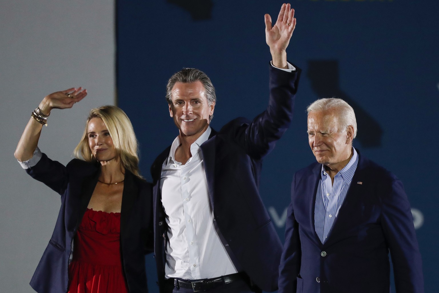 Steht in der Kritik: Gavin Newsom, hier mit seiner Frau Jennifer Siebel Newsom und US-Präsident Joe Biden.