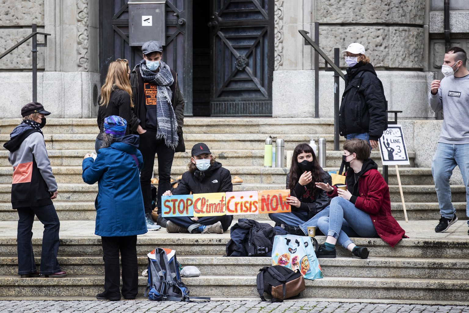 Unterstützung für die angeklagten Klimaaktivistinnen und -aktivisten am Mittwoch vor dem Bezirksgericht in Zürich.
