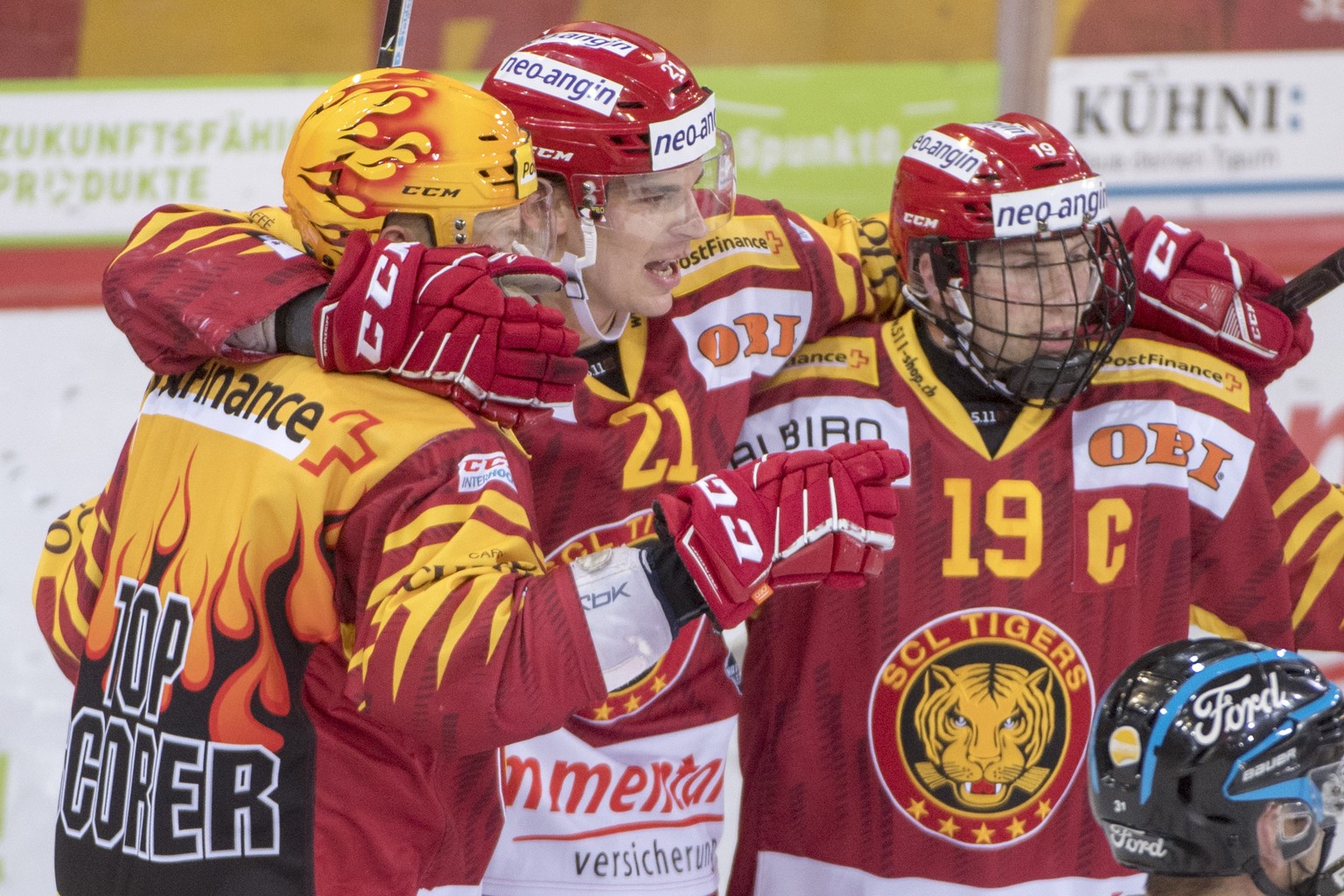Die Langnauer jubeln über den 1:0-Führungstreffer gegen den SC Bern.