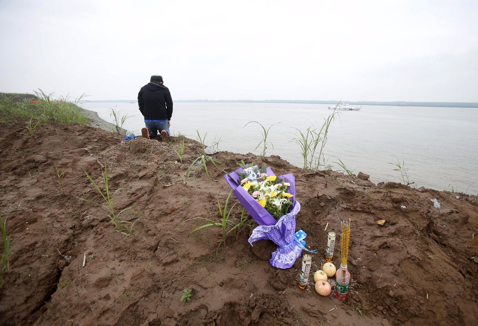 Ein Mann trauert um die Opfer.