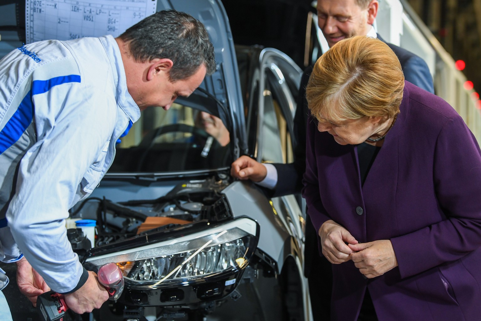 Angela Merkel am Montag beim Start der ID.3-Produktion.