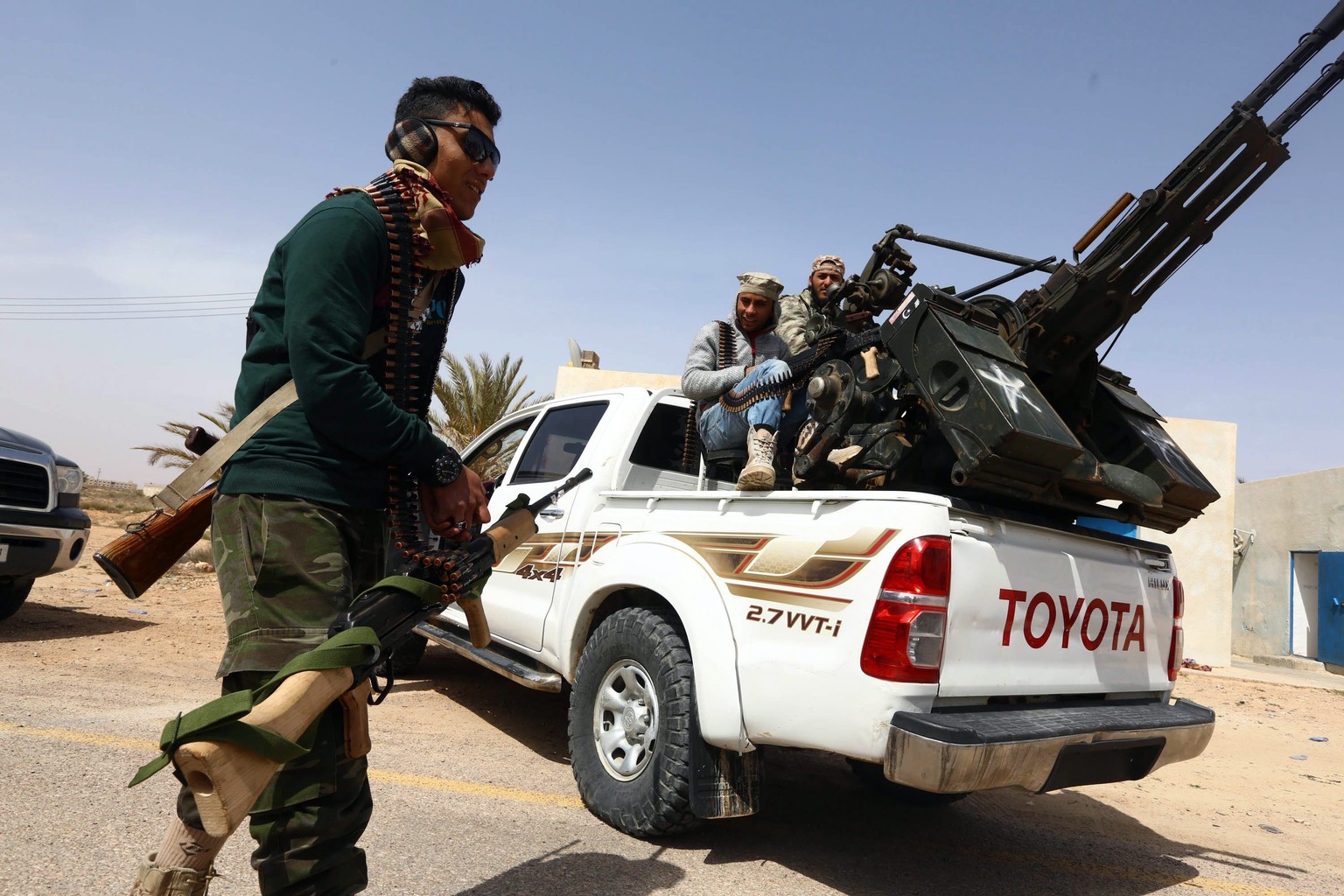 Mit der Islamisten-Regierung in Tripolis verbündete Milizionäre kämpfen in der Stadt Sirte gegen den IS.