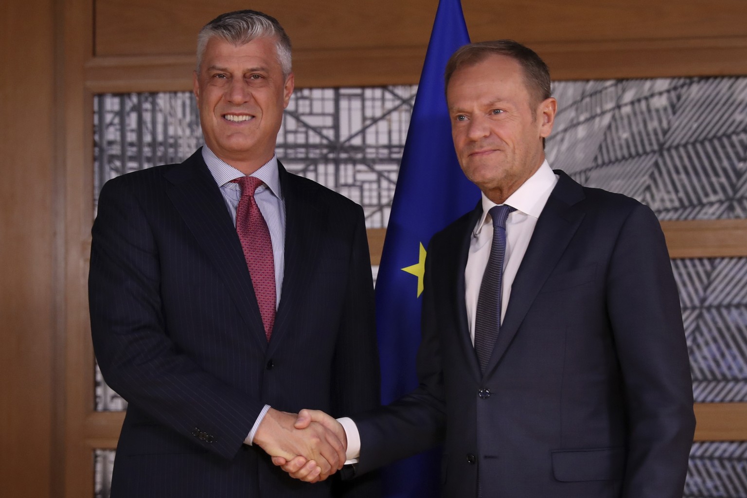 Hashim Thaci und EU-Ratspräsident Donald Tusk am Montag in Brüssel.