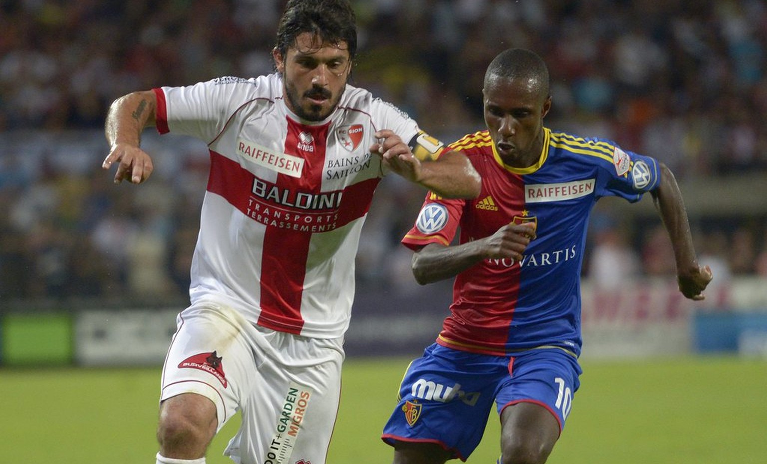 Gilles Yapi, hier im Duell mit Sions Gennaro Gattuso, wurde mit dem FC Basel dreimal Schweizer Meister.