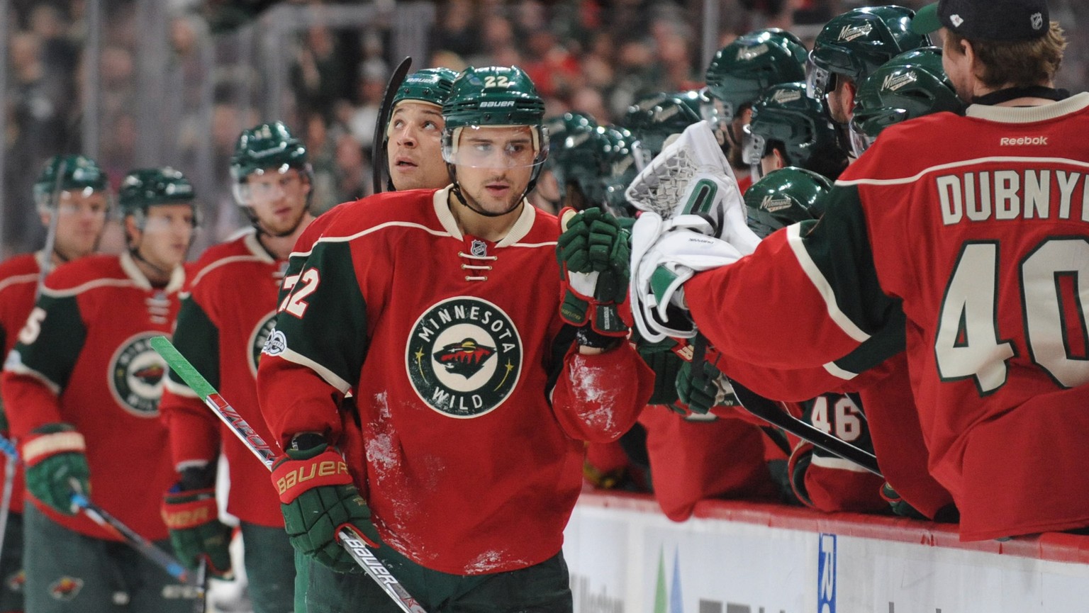 Niederreiter feiert mit den Teamkollegen sein Tor zum 1:1.