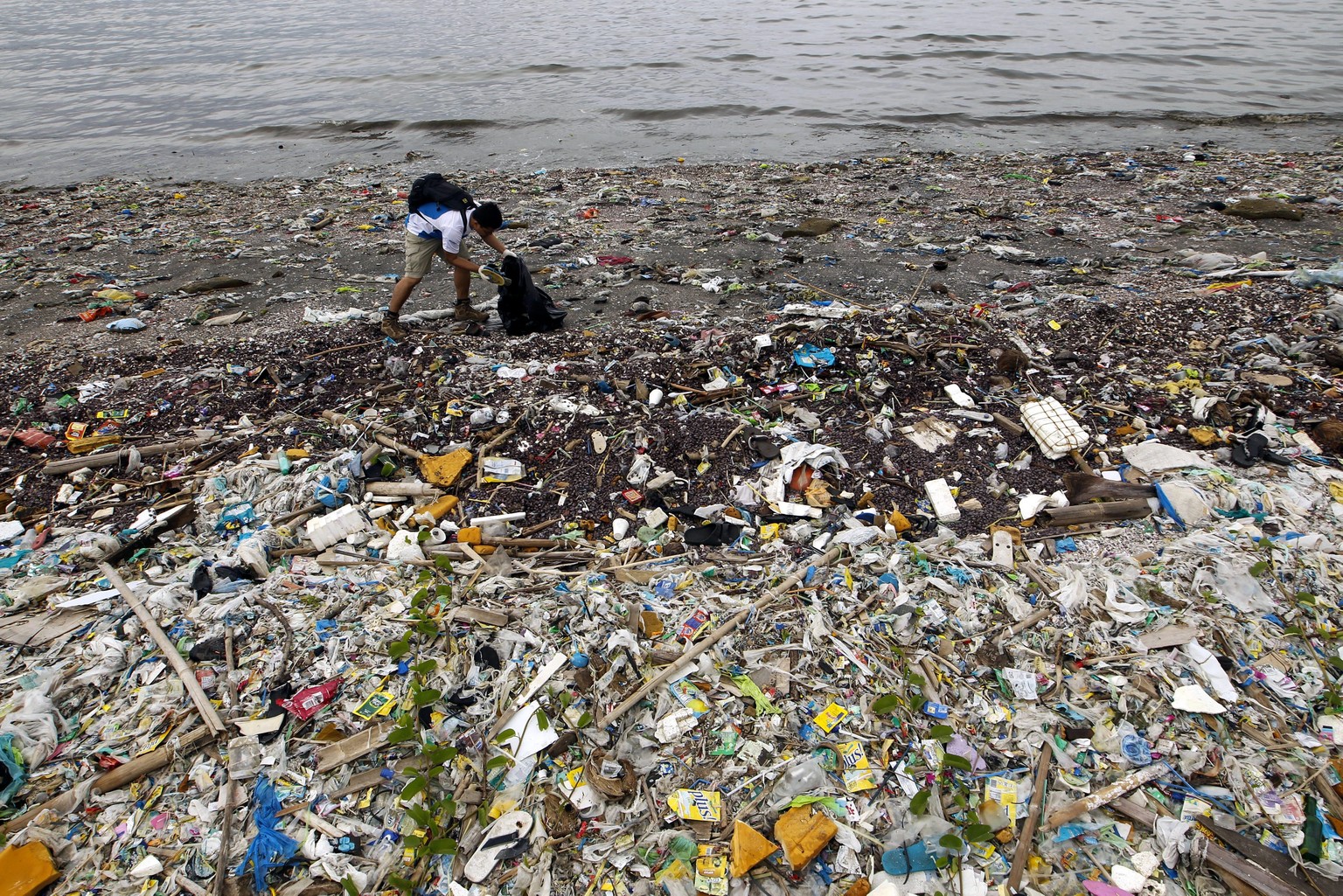 Säuberungsaktion an einem Strand von Mabuhay Island auf den Philippinen, im Rahmen des International Coastal Cleanup.