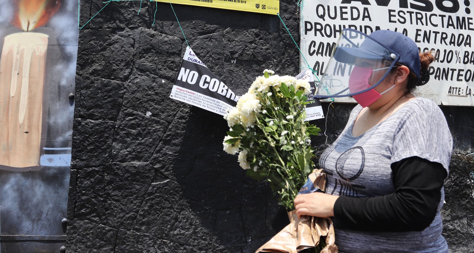 Eine Frau vor einem Friedhof in Mexico City: Die Corona-Pandemie fordert auch indirekte Todesopfer.