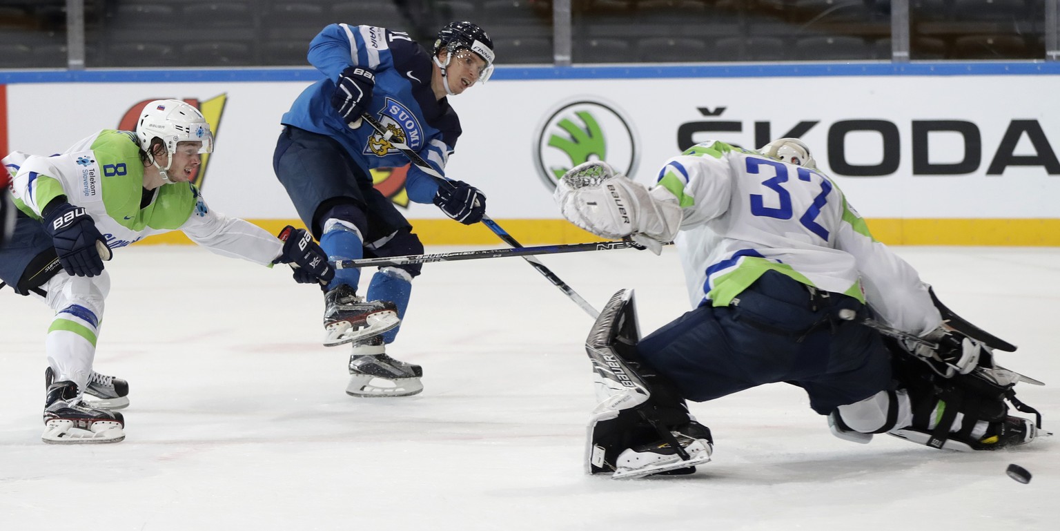 Fünfmal landet der Puck hinter Sloweniens Torhüter.