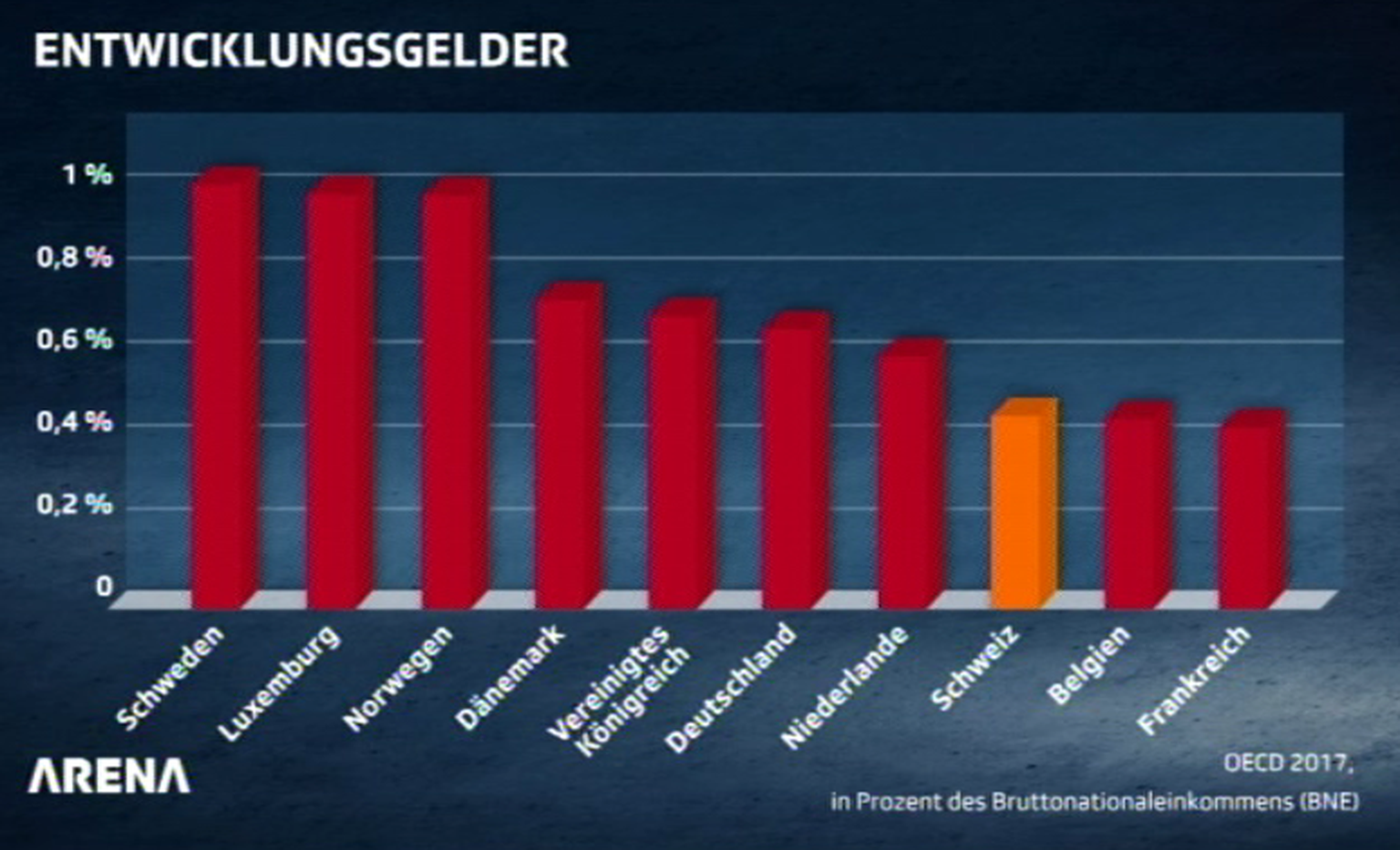 Die Schweiz zahlt 0,45 des BNE in die Entwicklungshilfe. Schweden mehr als doppelt so viel.