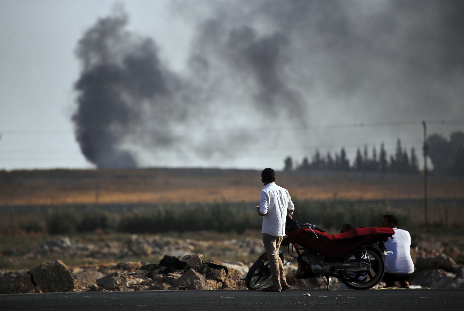 Türken sehen, wie auf der syrischen Seite der Grenze Rauch auf steigt: Die Gefechte halten auch am Samstag an.
