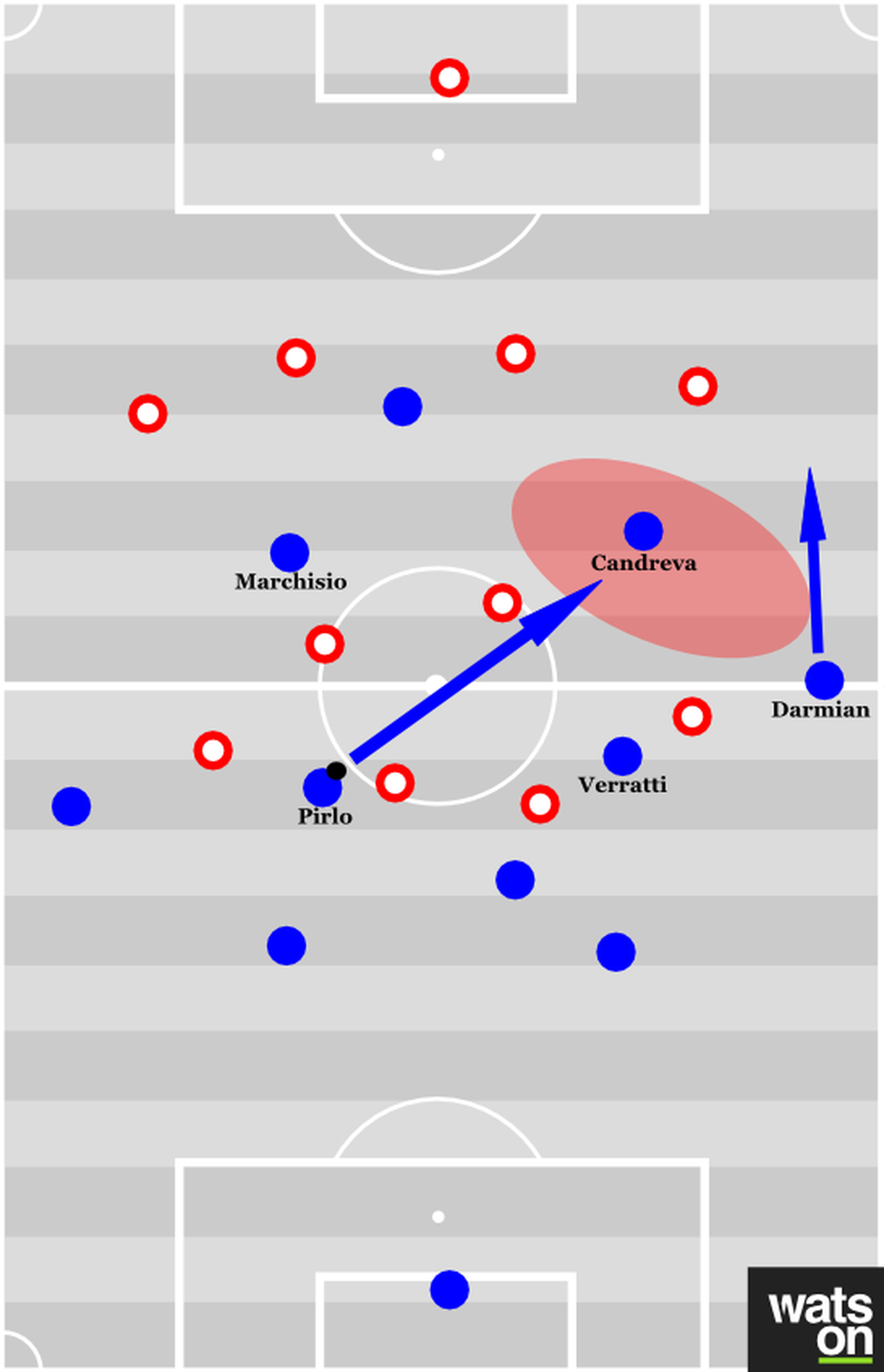 Wie Candreva halbrechts in der Schnittstellezwischen Gerrard und Rooney freigespielt wurde.