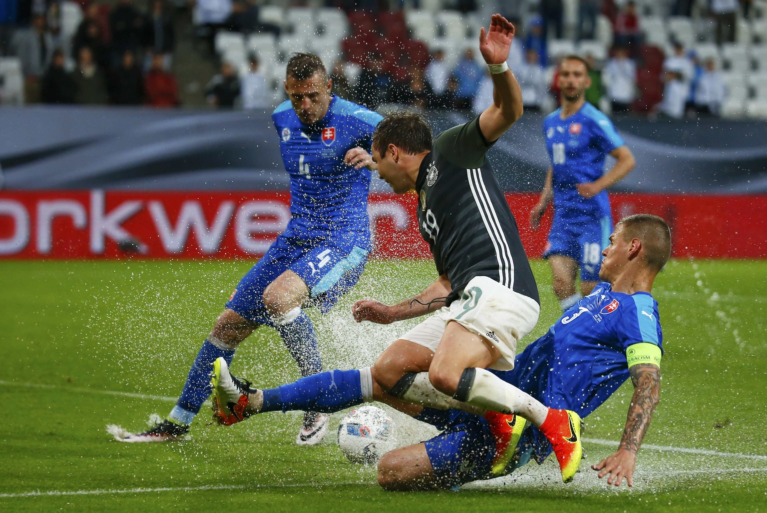Viel Wasser, wenig Fussball: Szene aus dem verregneten Testspiel Ende Mai.