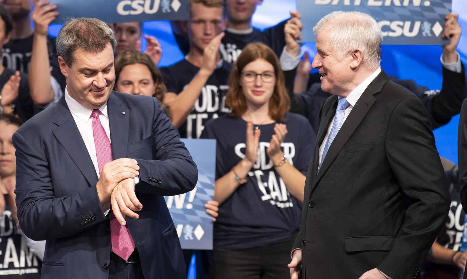 Markus Söder checkt schon mal ab, wie viele Minuten es noch dauert, bis seine CSU die absolute Mehrheit verliert.