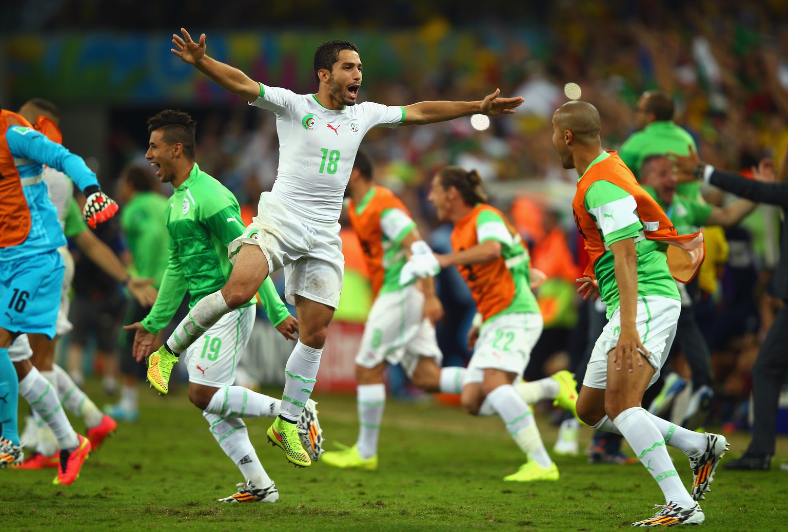 Algerien freut sich nach dem Unentschieden gegen Russland über den Achtelfinaleinzug.