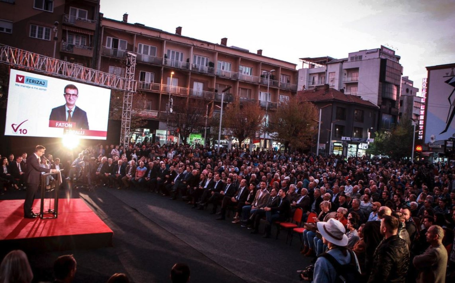 Faton Topalli beim Wahlkampfabschluss in Ferizaj.