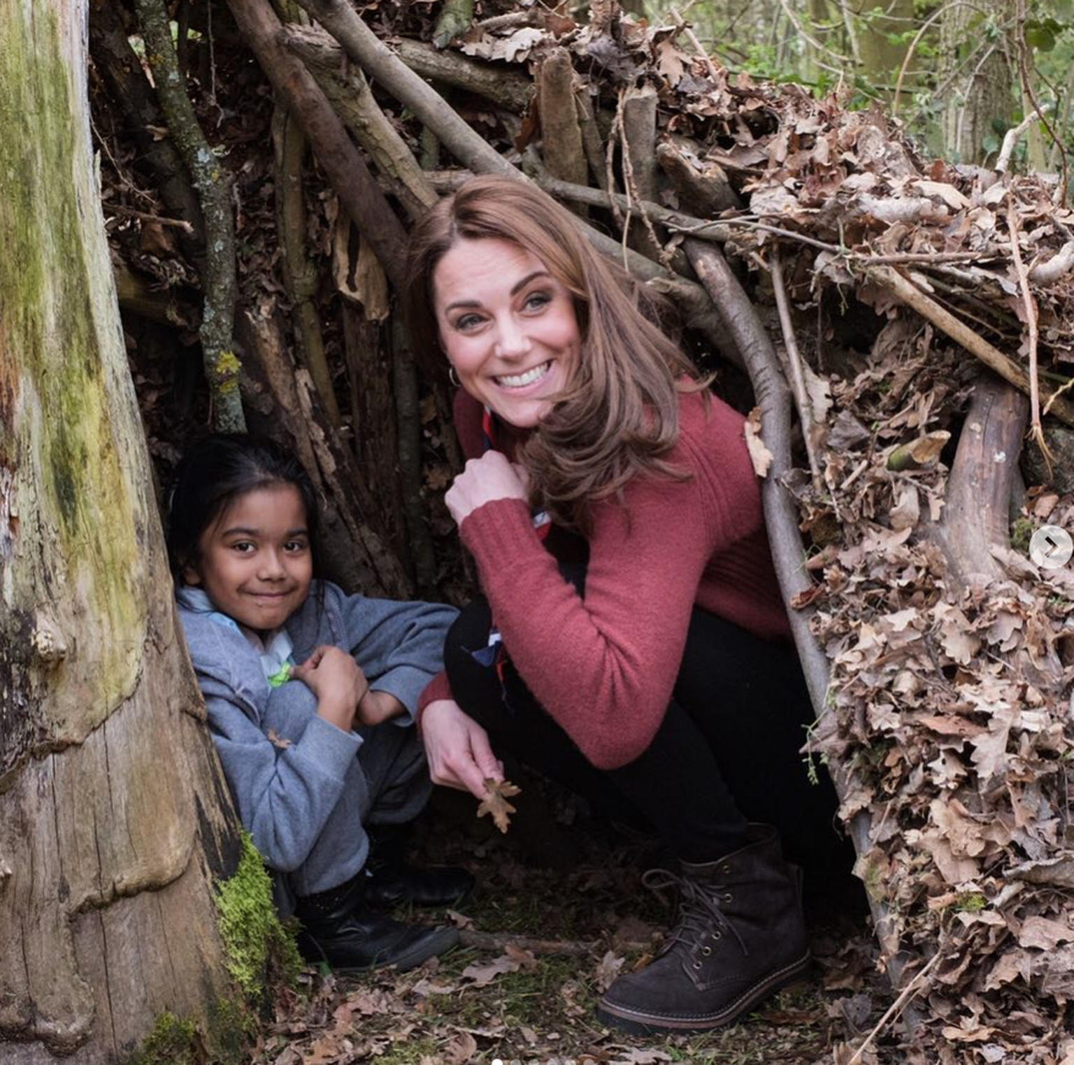 Kate erschrickt ein bisschen über das Kind, das plötzlich aus dem Baum kriecht. Doch sie lässt sich nichts anmerken und versucht, den Schreck mit einem natürlichen Lächeln zu überspielen.