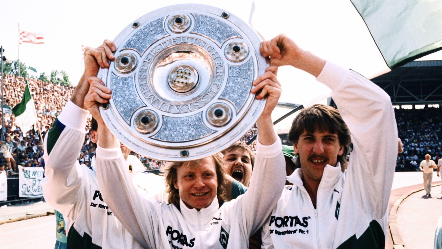 Manni Burgsmüller streckt 1988 die Meisterschale in die Höhe.