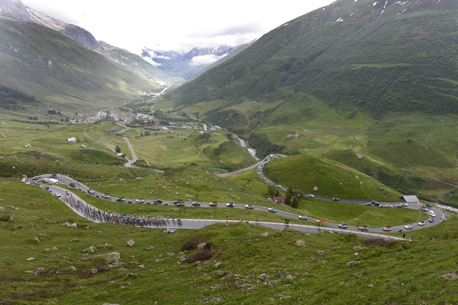 Das Feld schlängelt sich den Furkapass hoch.