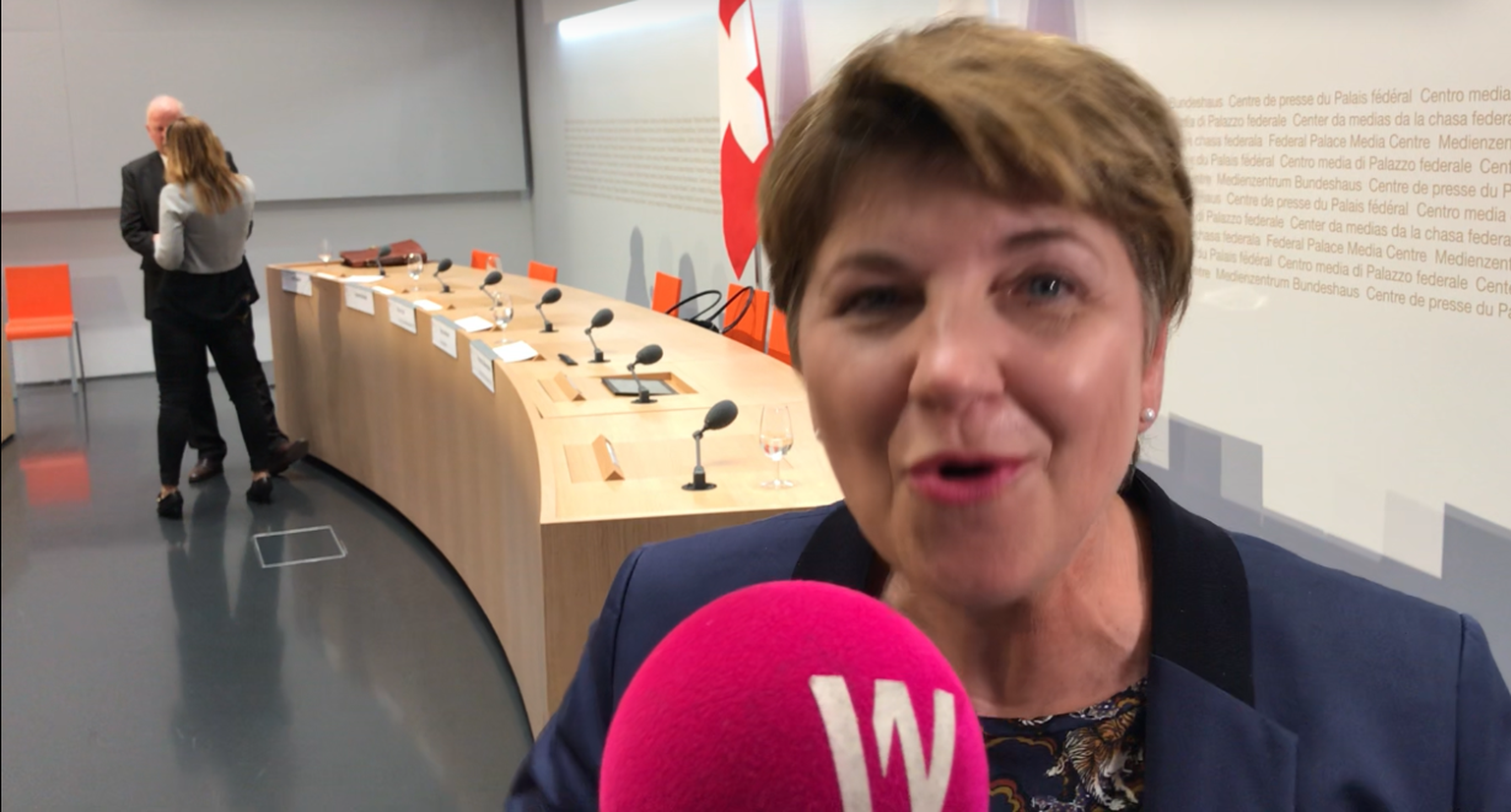 Eine gut gelaunte Viola Amherd erklärt, wie sie die Luftverteidigung der Schweiz sicherstellen will.