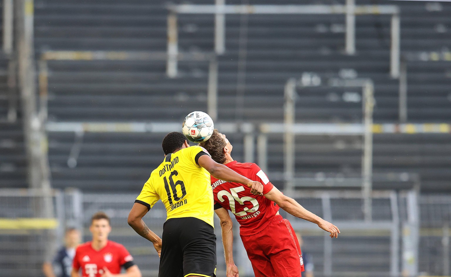 Das Bundesliga-Spitzenspiel mit leerer Tribüne im Hintergrund.