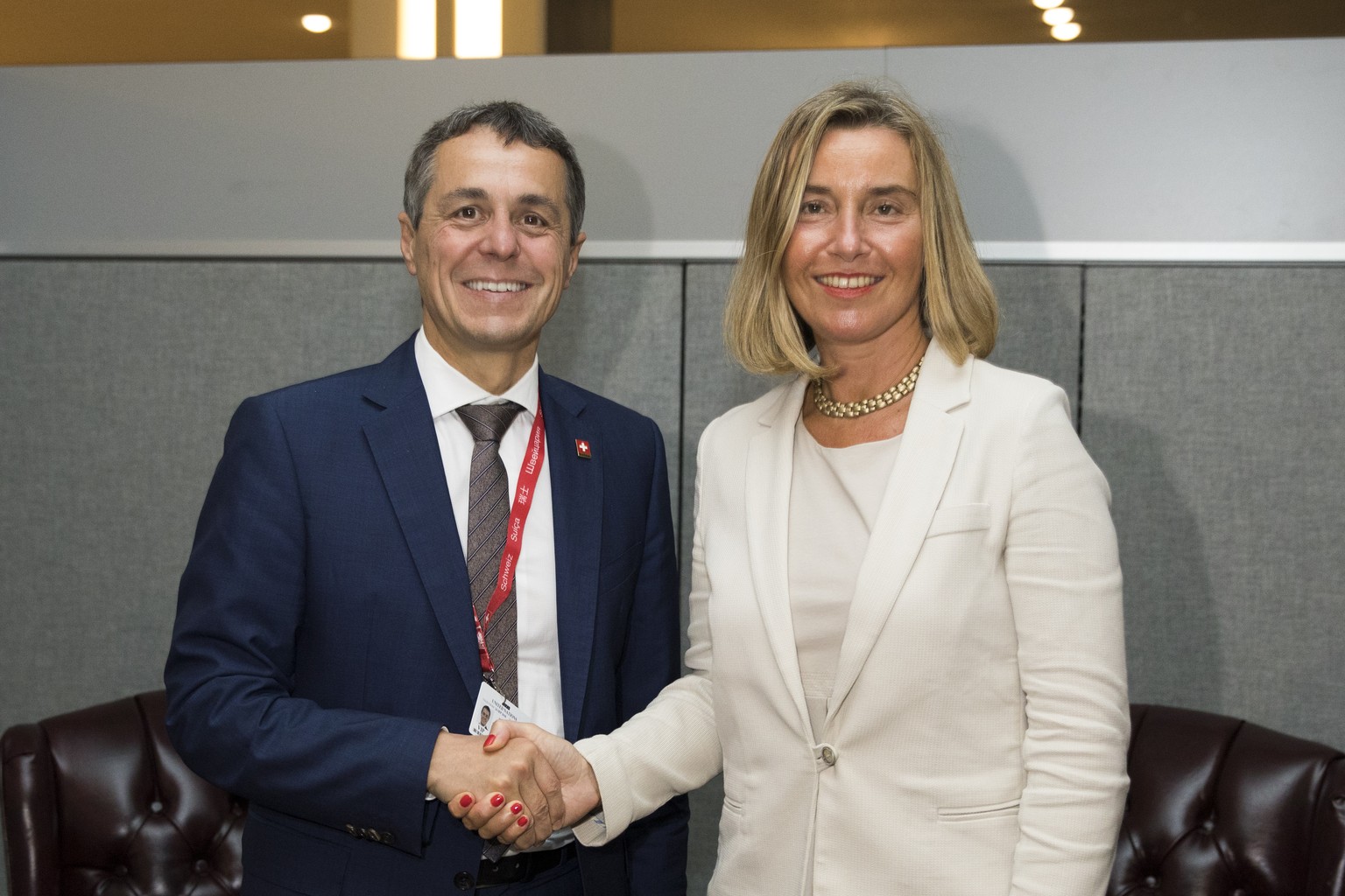 Gute Miene zum schwierigen Spiel: Ignazio Cassis und die EU-Aussenbeauftragte Federica Mogherini im UNO-Hauptquartier in New York.