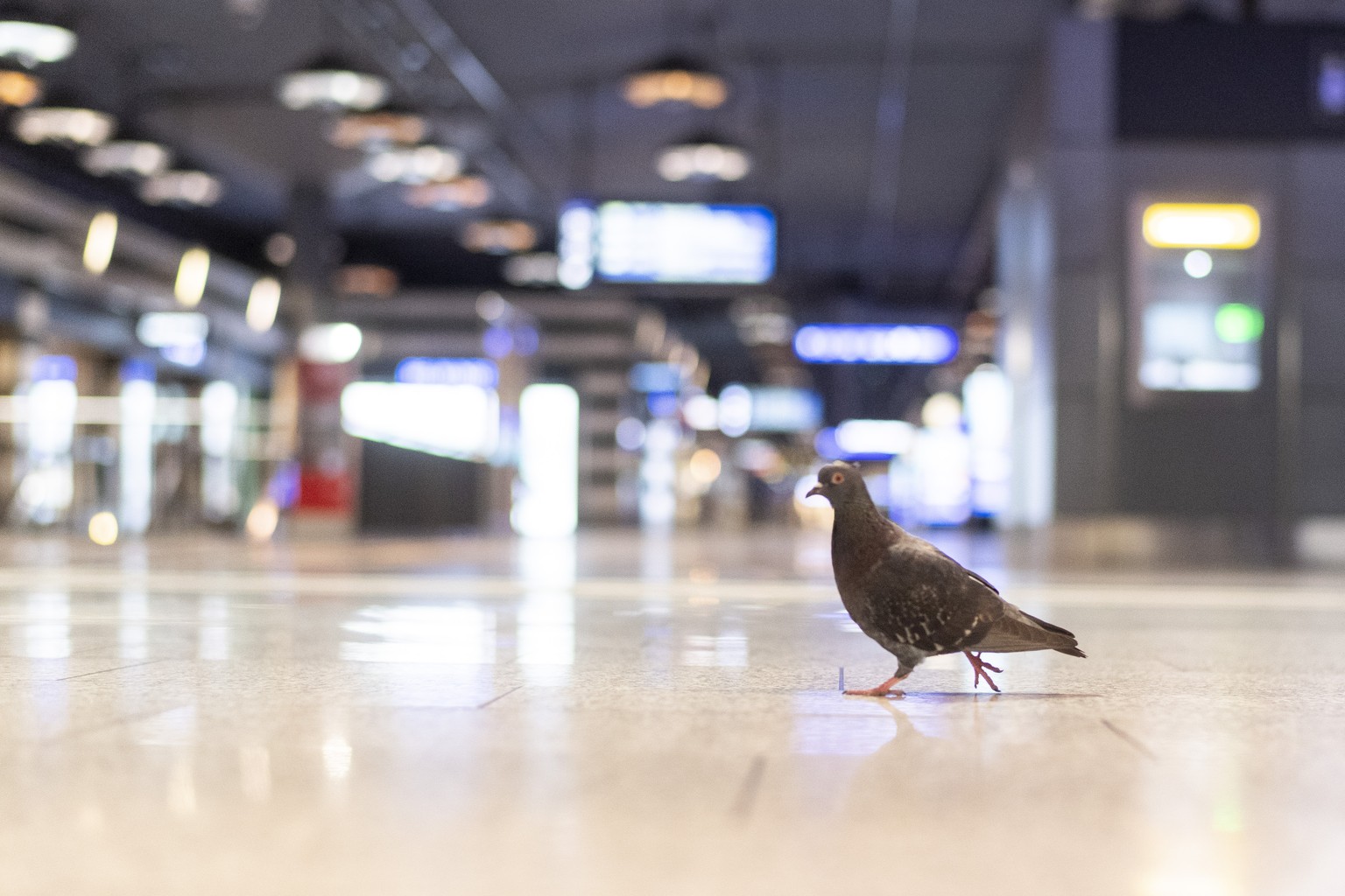 War der Stillstand nötig? Eine Taube im leeren Hauptbahnhof in Zürich.