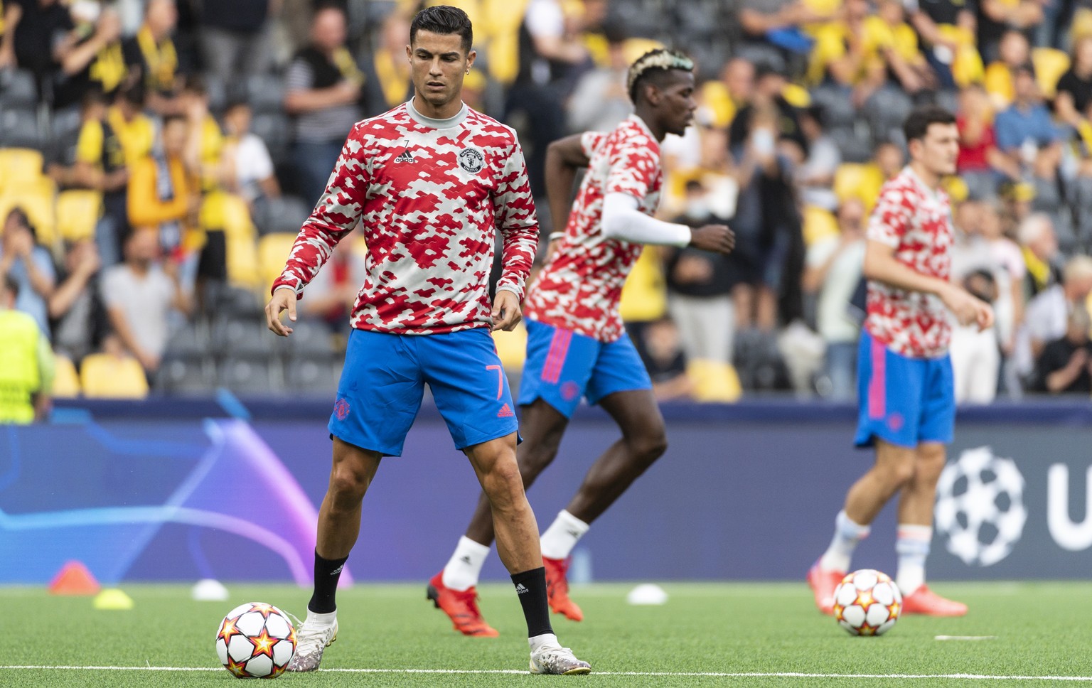 Cristiano Ronaldo beim Aufwärmen, hinter ihm Paul Pogba.