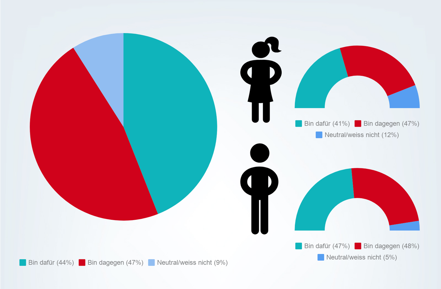 Rund sechs Prozentpunkte mehr Männer als Frauen sind für gebührenfinanziertes Fernsehen und Radio.