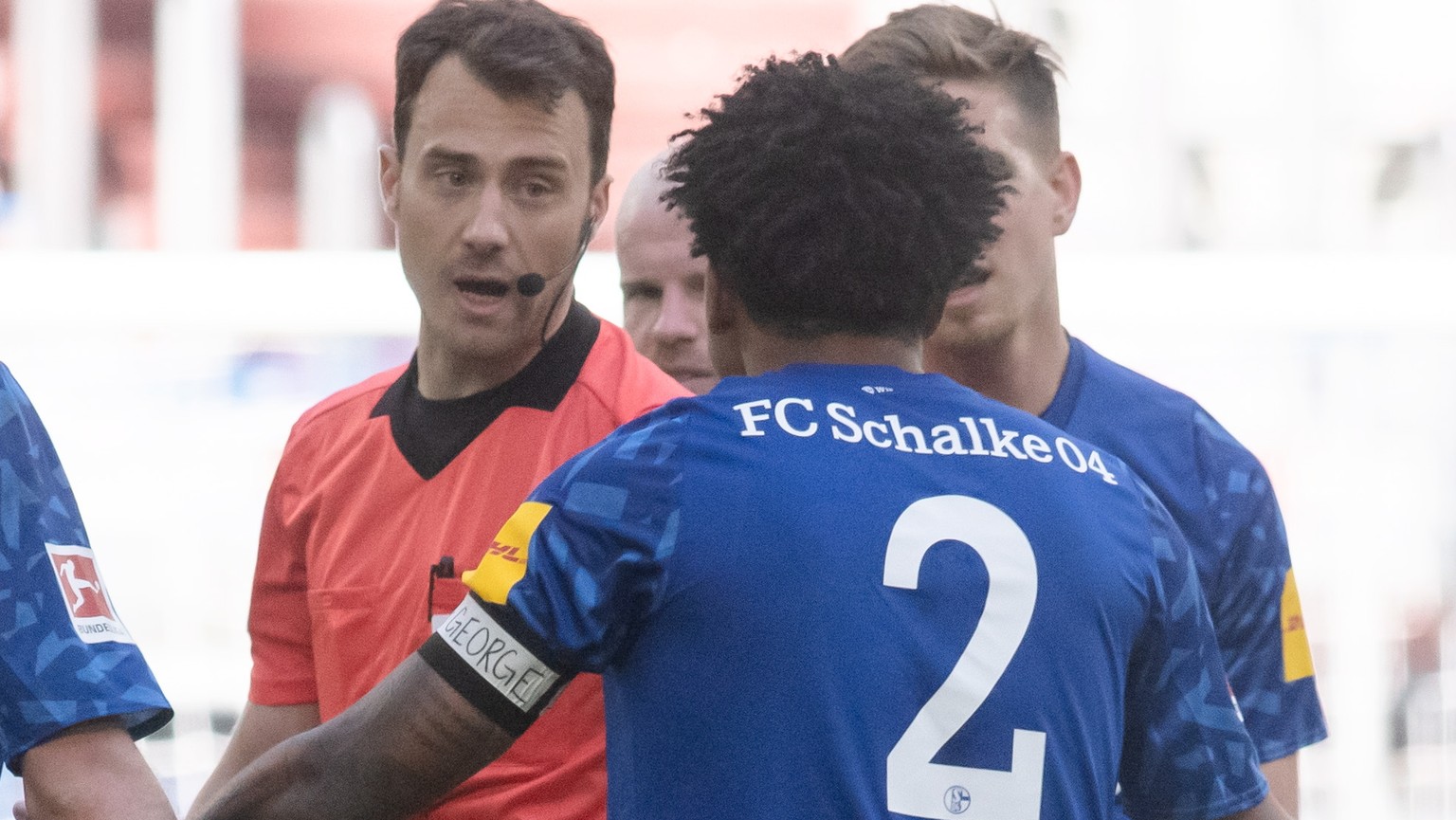 Schalke-Captain McKennie im Gespräch mit dem Schiri.