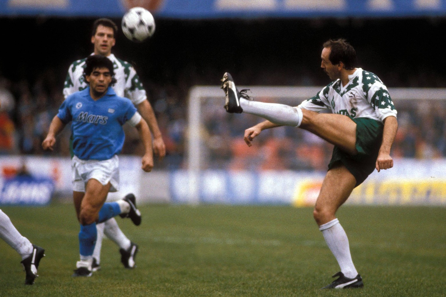 Duell mit dem grössten: Jonny Otten schiesst den Ball an Diego Maradona vorbei.