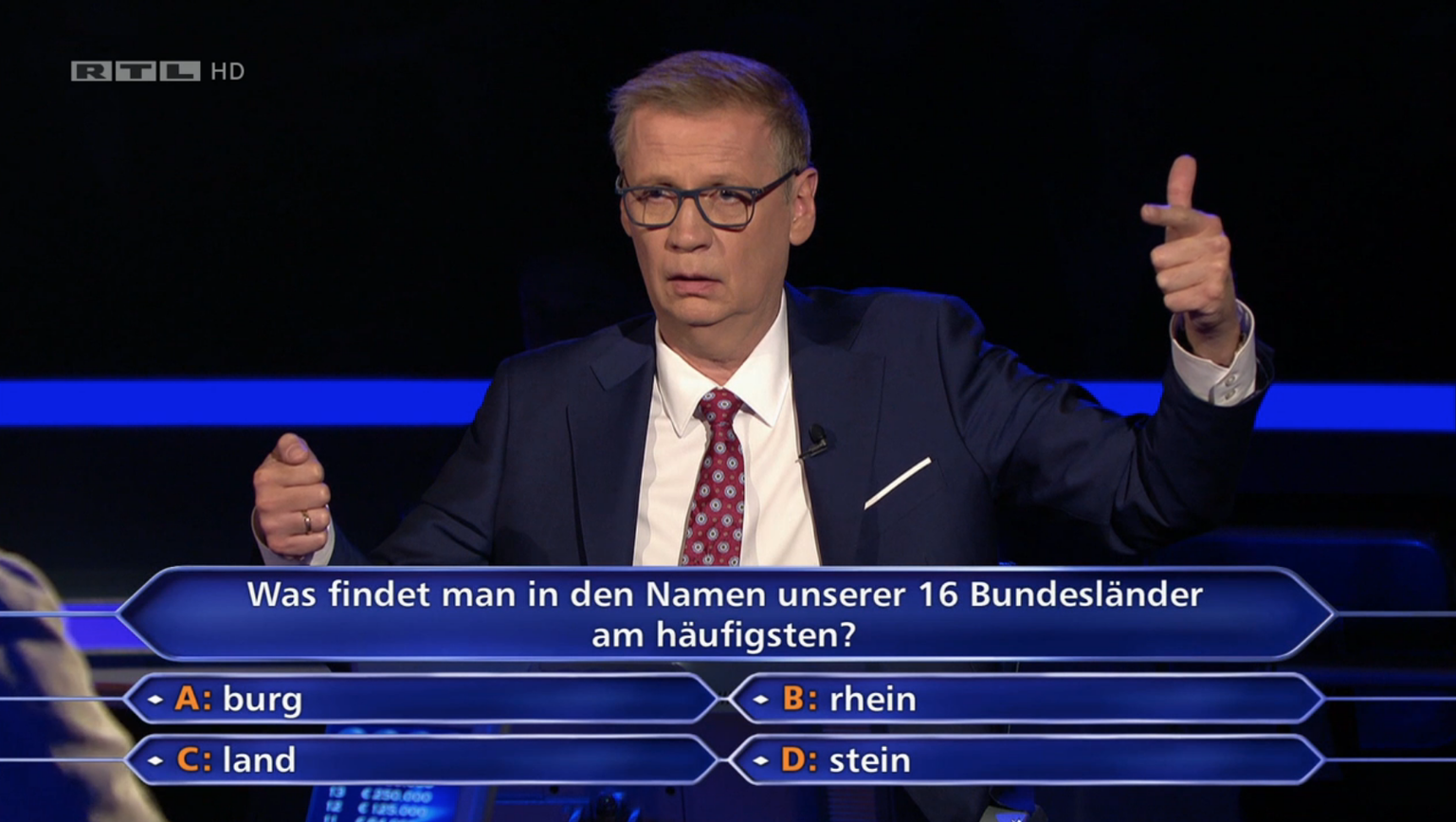 Günther Jauch hilft dem Kandidaten beim Zählen.