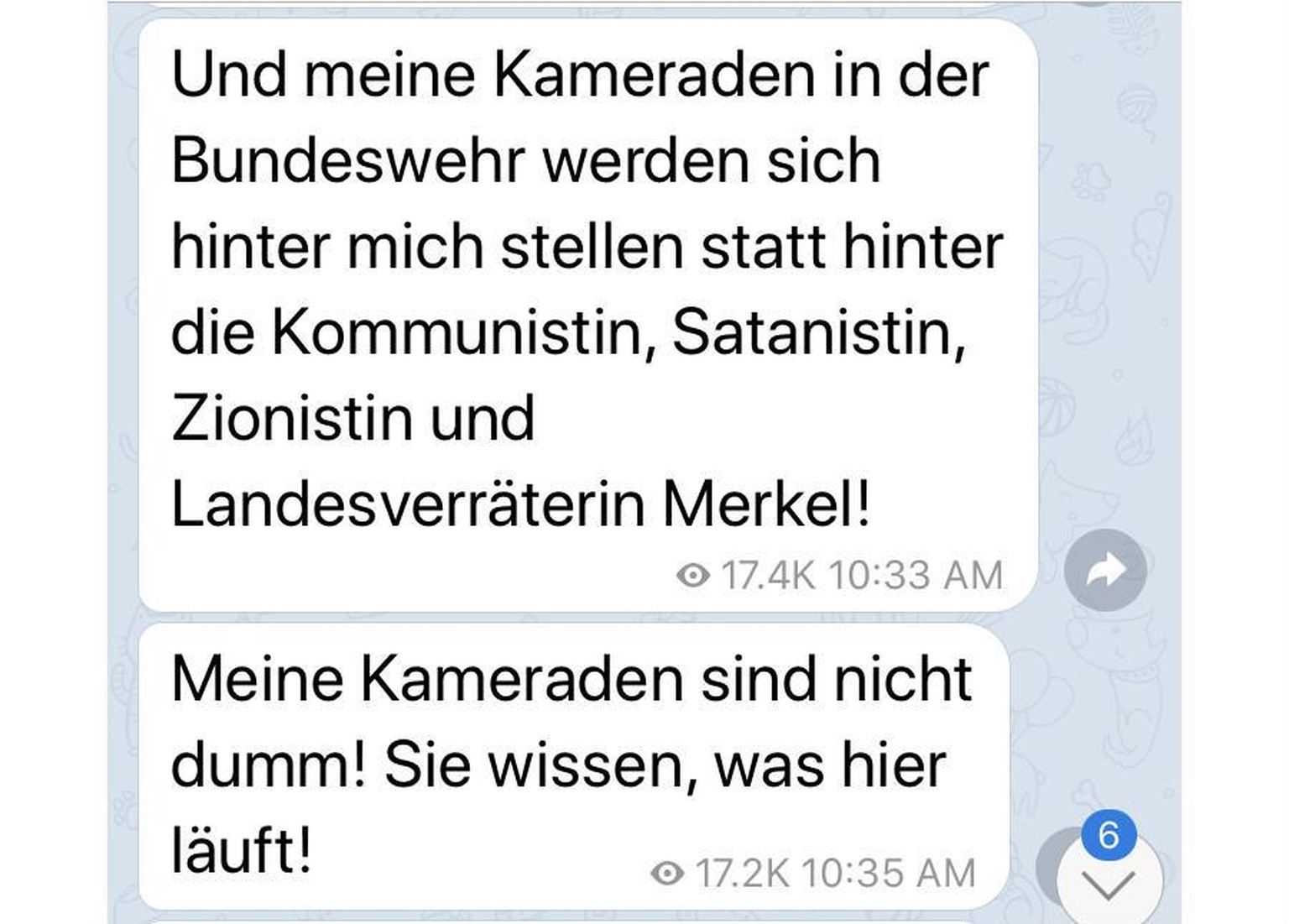 Merkel oder Hildmann: Hildmann sieht sich offenbar als den grossen Gegenspieler und die Sicherheitskräfte vor der Wahl, wem sie folgen.