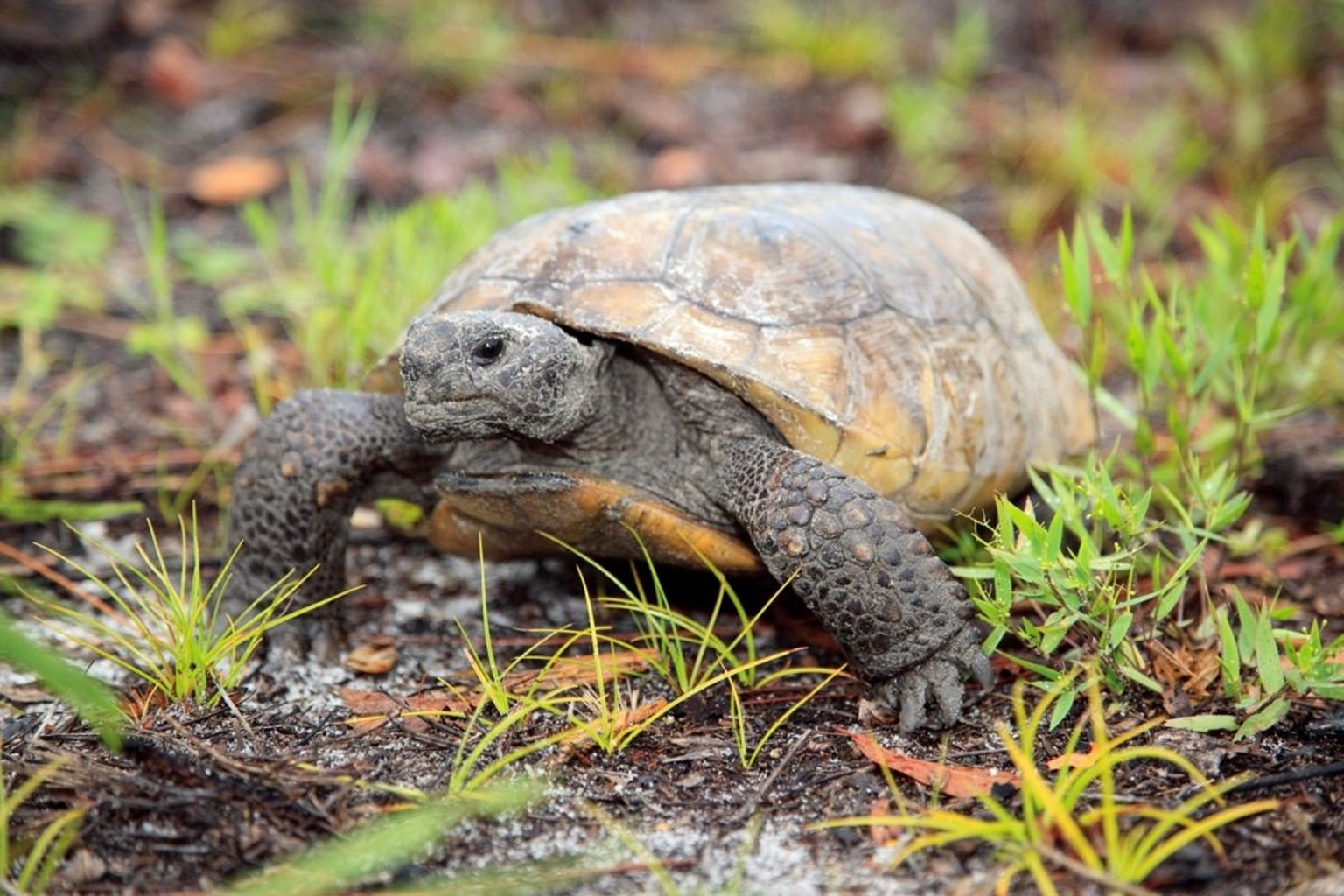 Eine Gopherschildkröte kann bis zu 40 Zentimeter gross werden: für den Teju ein leckeres Essen.