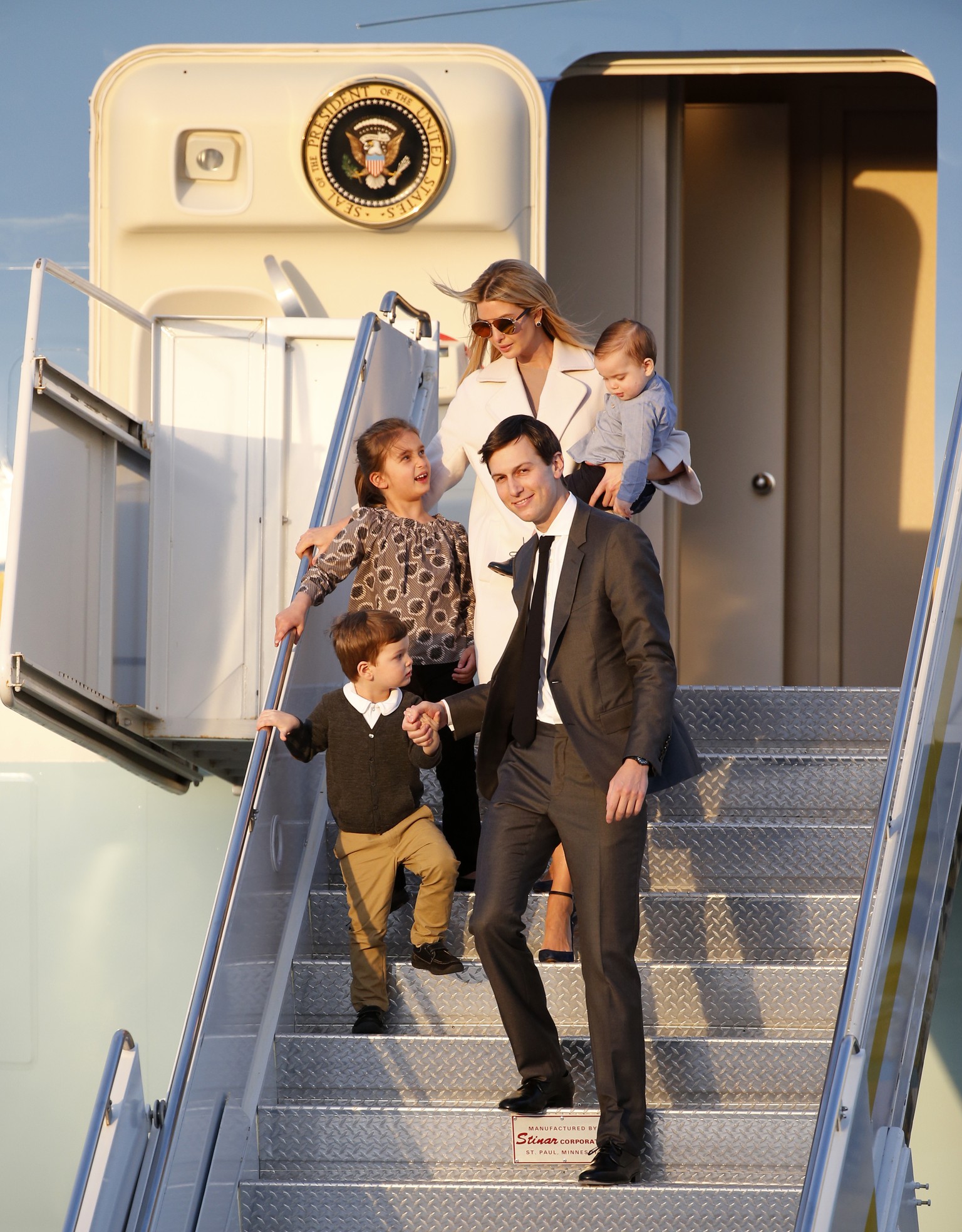 Ivanka Trump und Jared Kushner verlassen mit ihren Kindern die Air Force One.