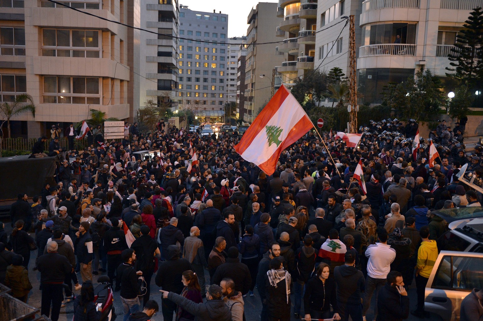 Demonstranten vor Hassan Diabs Haus in Beirut.