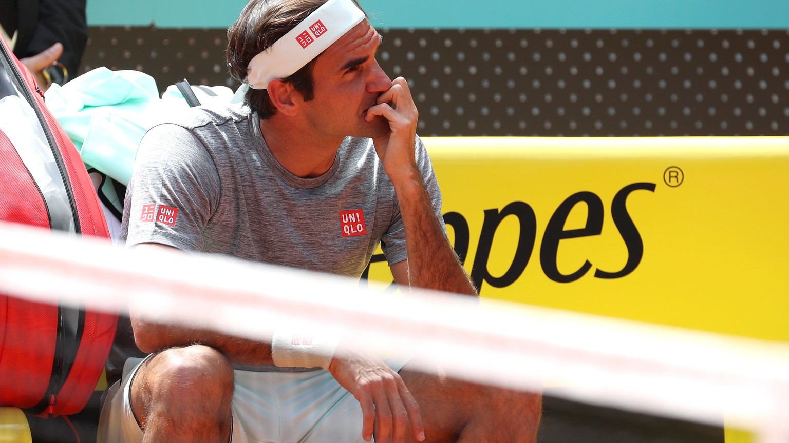 Federer am Freitag bei einer kurzen Pause im Training in Madrid.