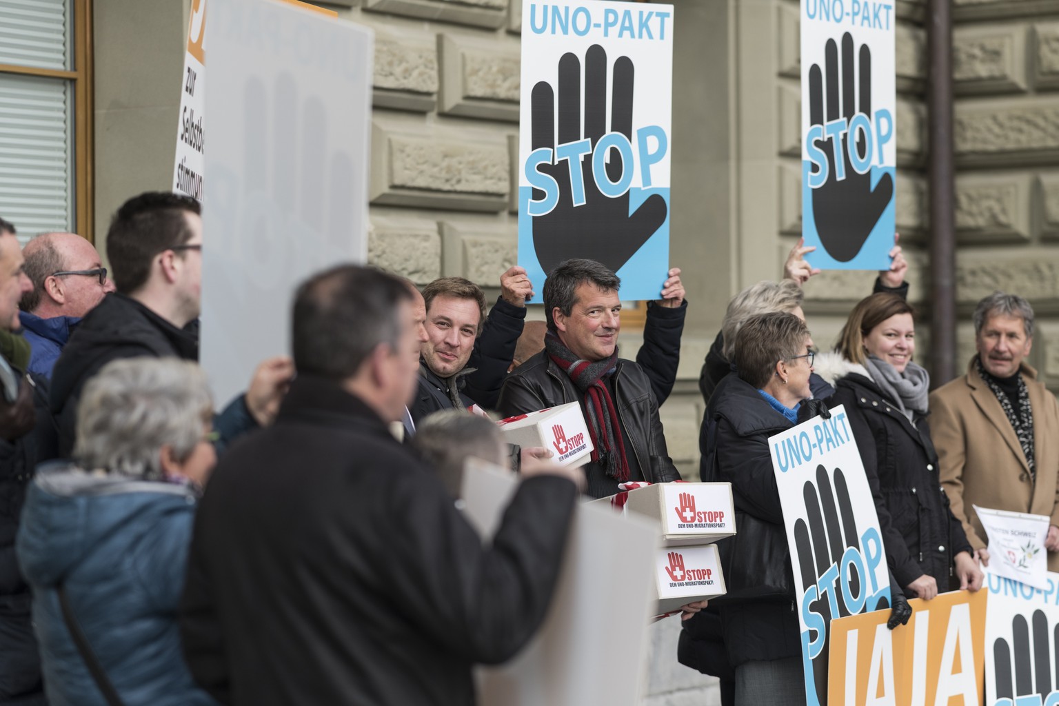 Aktivisten der SVP-nahen Auns reichen eine Petition gegen den Uno-Migrationspakt ein.