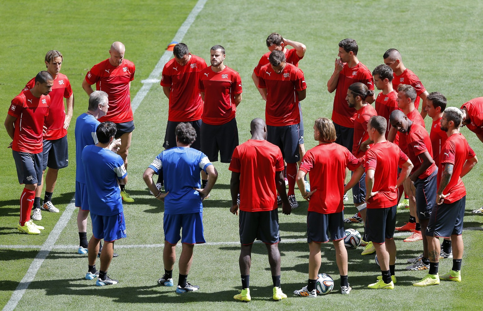 Hitzfeld schwört seine Truppe auf den Match ein.