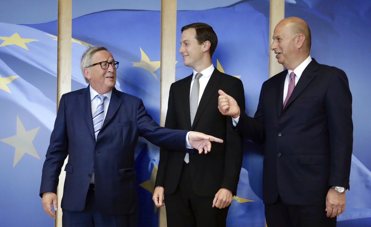 Gordon Sondland mit EU-Kommissionspräsident Jean-Claude Juncker und Trump-Schwiegersohn Jared Kushner im Juni in Brüssel.