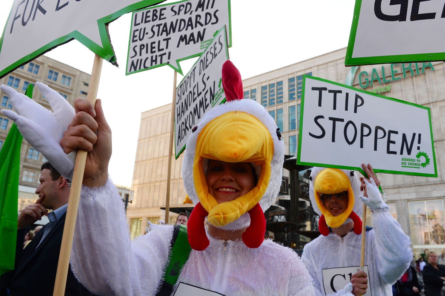 Demonstration gegen TTIP im Rahmen einer Wahlkampfveranstaltung der SPD.