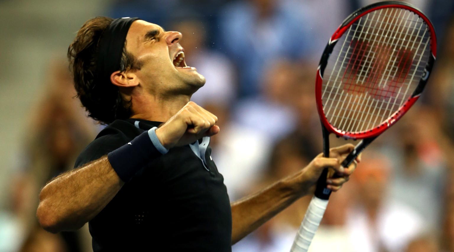 Roger Federer schreit die Freude über seinen Halbfinal-Einzug hinaus.