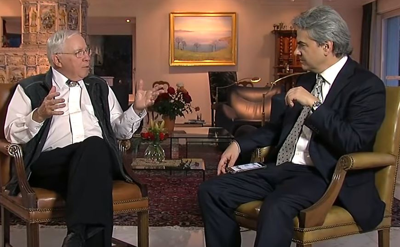 Christoph Blocher im Gespräch mit «TeleBlocher»-Moderator Matthias Ackeret.