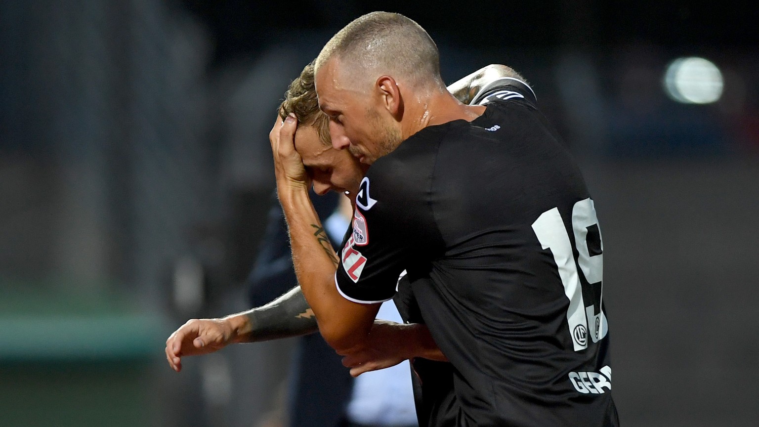 Gerndt umarmt innig Mattia Bottani, den Torschützen zur 2:0-Führung der Tessiner.