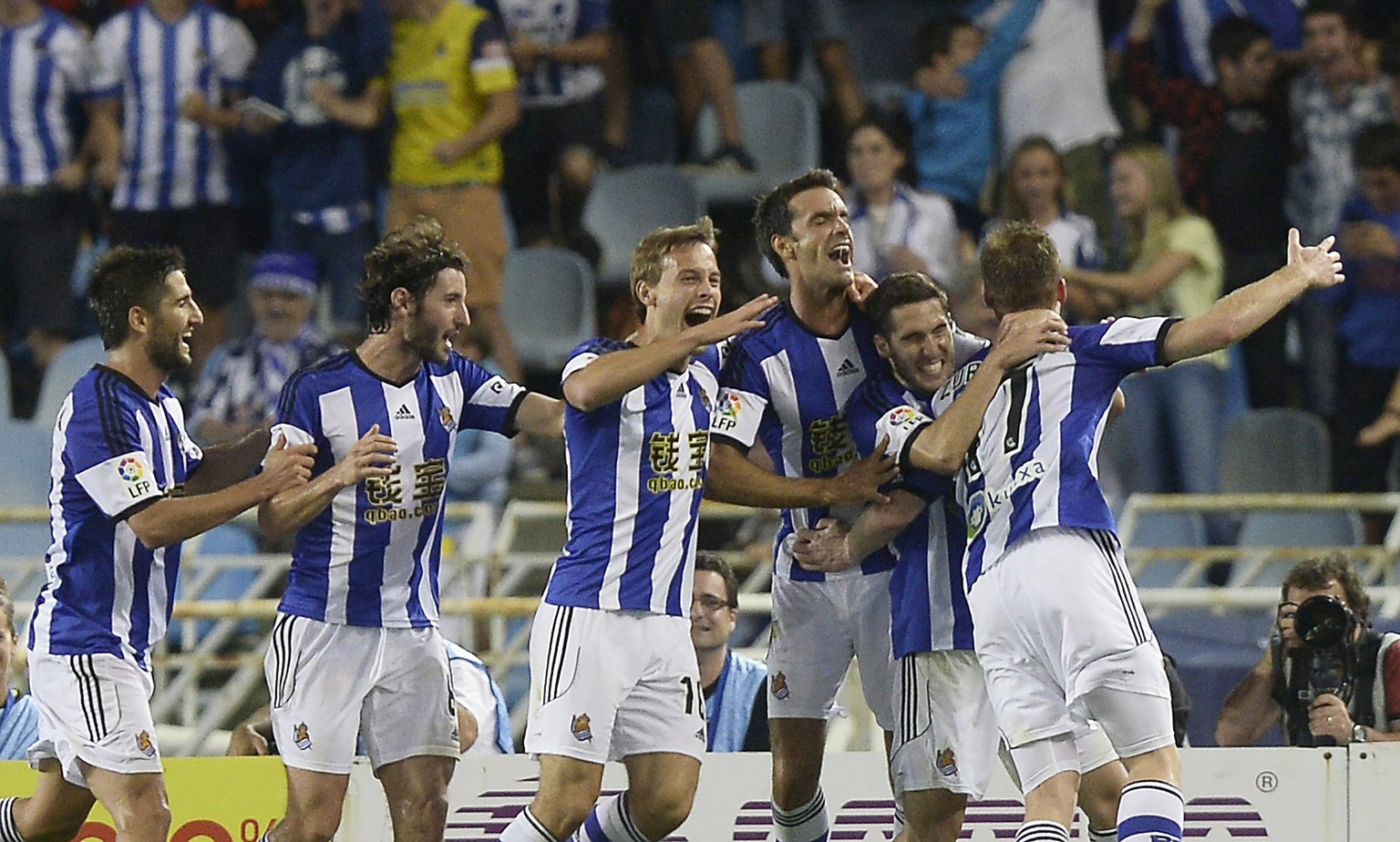 San Sebastians Spieler bejubeln den überraschenden Erfolg gegen den Champions-League-Sieger.