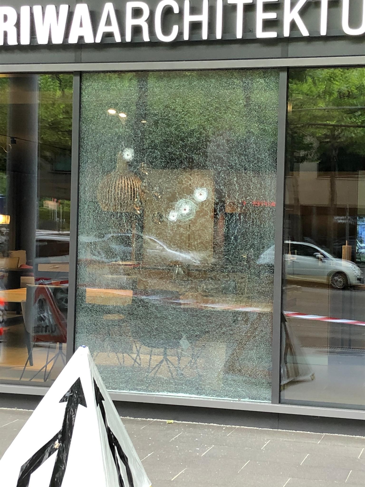 Einschusslöcher im Möbelgeschäft in Interlaken.
