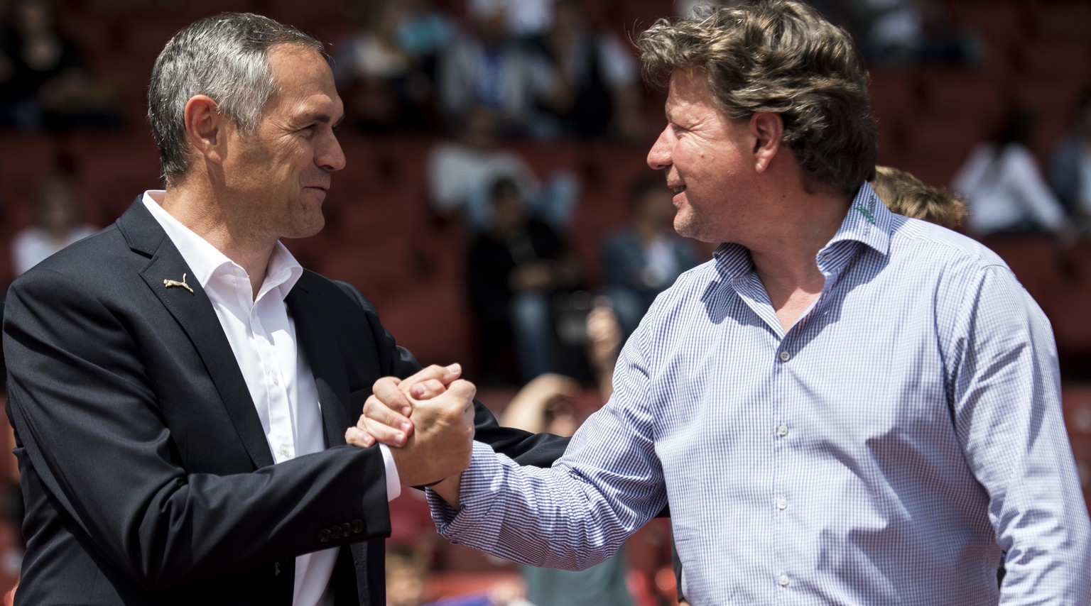 Shakehands vor dem Match: Nach dem Schlusspfiff war GC-Trainer Tami bestimmt besserer Laune als FCSG-Coach Saibene.