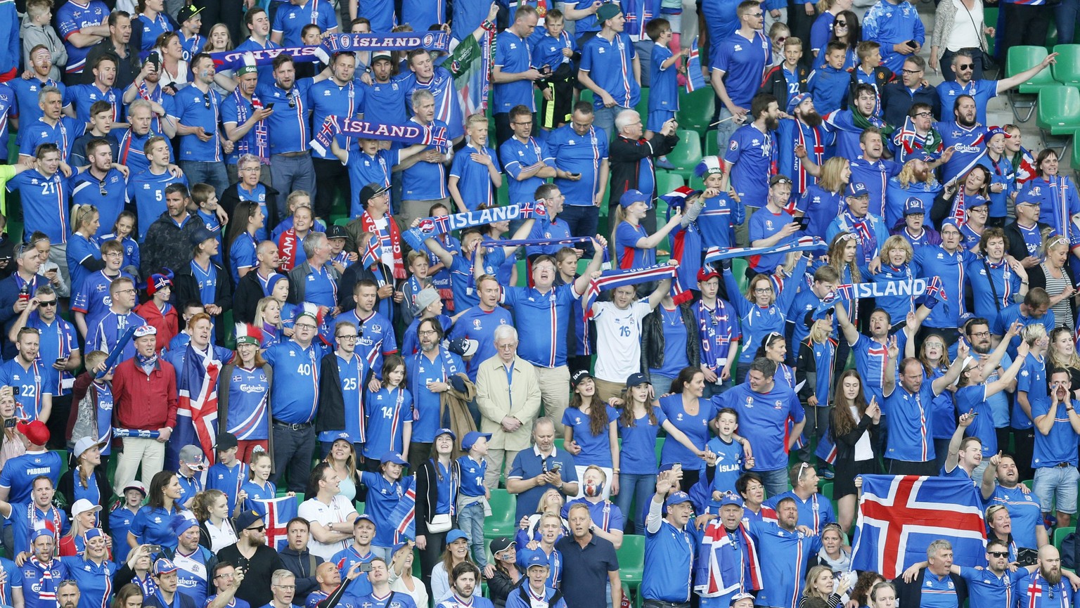 Hurra, die ganze Insel ist da! Isländische Fans in Saint-Etienne.