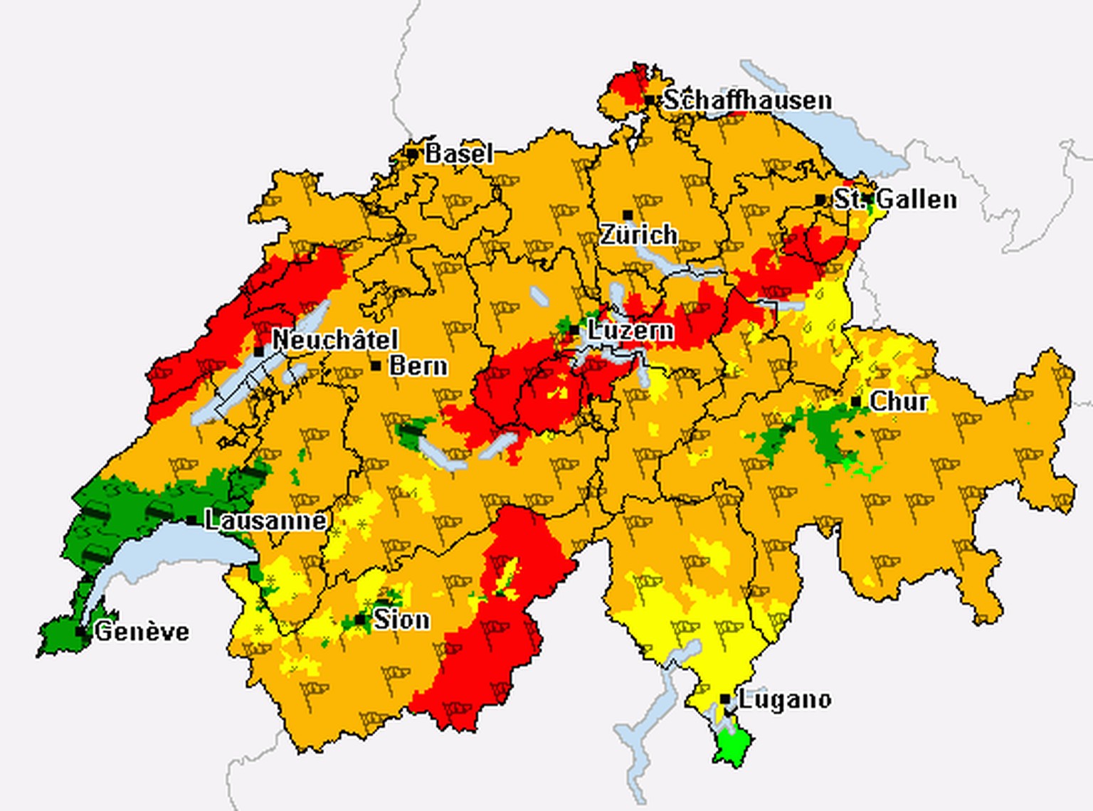 Im Juragebirge und in den Voralpen werden Orkanböen von bis zu 160 km/h erwartet.