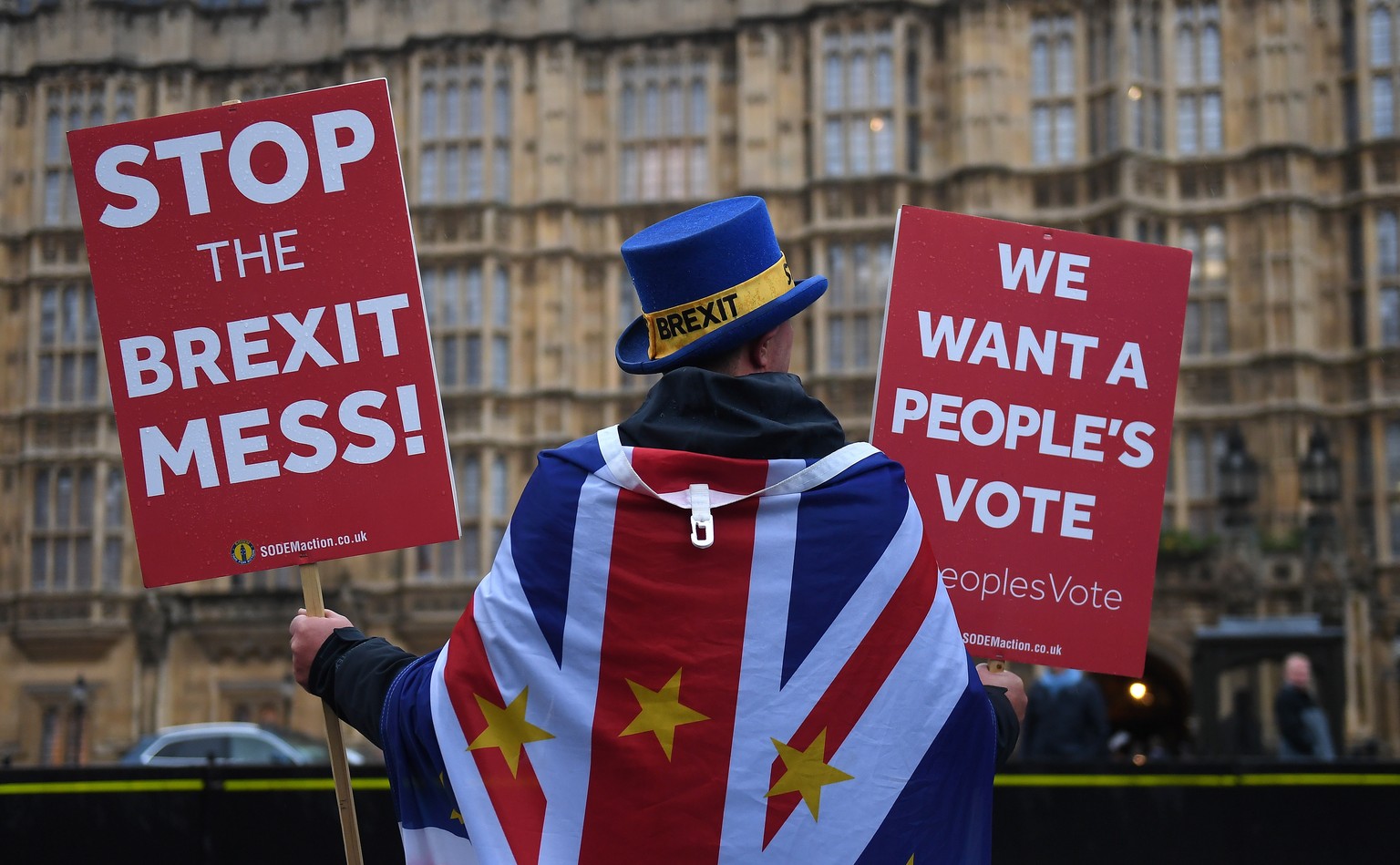 Demonstrant gegen den Brexit: Eine knappe Mehrheit der Briten lehnt heute den Brexit ab.