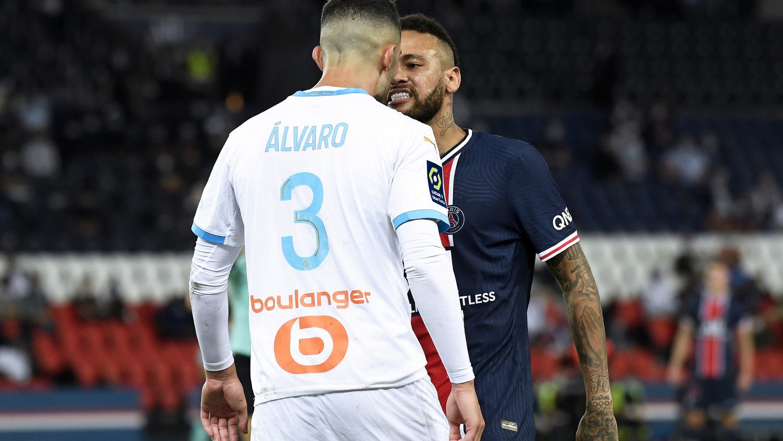 Neymar knöpft sich Marseille-Verteidiger Alvaro Gonzalez vor.